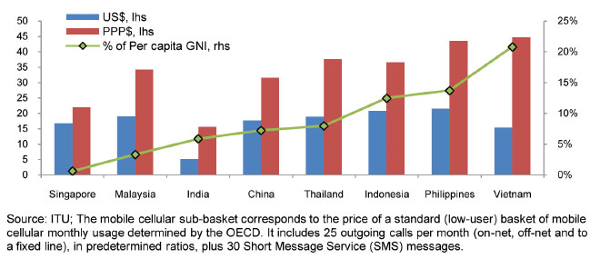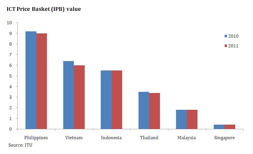 The very high cost of power remains a common complaint of businesses in the Philippines and a very important negative factor for national competitiveness. As Figure 146 shows, in 2010 a factory in the Philippines could pay more than twice as much for power than a factory in Indonesia and Vietnam and almost twice as much as a factory in Malaysia and Thailand.