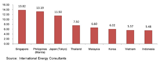 In addition, an Anti-Red Tape Task Force (ARTTF) chaired by the DTI, was organized in 2006. The ARTTF held a series of interagency meetings focusing on 10 “worst” red tape processes identified in a survey of the American Chamber of Commerce (AmCham) but with limited success in reforming bureaucratic behavior. The ARTTF has worked closely with the WB/IFC to improve the low ranking of the Philippines in the “Ease of Doing Business” survey. In 2007 the Anti-Red Tape Act (RA 9485) was enacted, adopting the concept of a Citizen’s Charter for the public to be informed of regulations and to receive prompt service from government offices. As the IRRs were promulgated through Civil Service Commission Resolution No. 081471 only on July 24, 2009, there has been insufficient time to judge the law’s effectiveness in reforming the bureaucratic culture that has contributed to repeated low competitiveness rankings. An AmCham membership survey in 2009 asked members if they were aware of the Anti-Red Tape Act; most respondents answered in the negative, indicating a need for more publicity to inform the business community about the law. The following data examines several types of business costs in selected Asian countries, including daily minimum wages, paid holidays, office rental costs, electricity prices, telecommunications expenses, transportation costs, red tape, and expatriate living expenses.