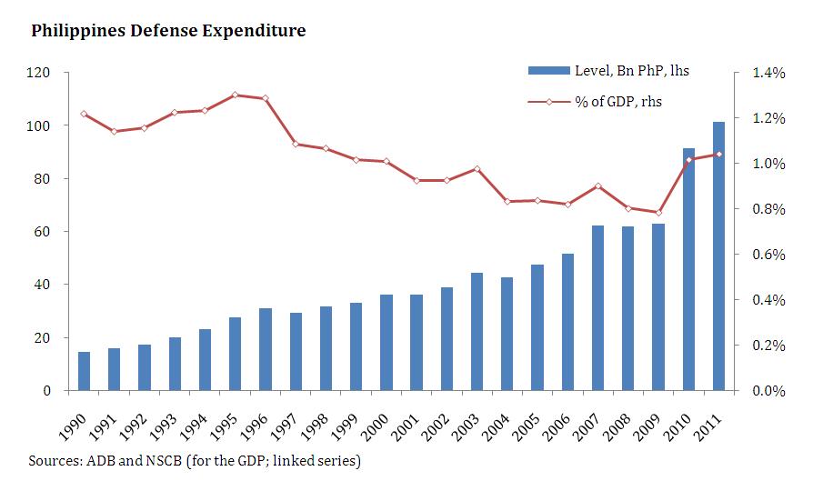 “The need to modernize is most glaring in the PAF [Philippine Air Force], which is often described in jest as all air and no force…That situation would be laughable if it did not put public safety and national security at risk. The lack of a credible air defense capability means the Philippine military cannot effectively patrol the country’s territory and deter intruders, including poachers and foreign forces building structures on Philippine-claimed areas in the South China Sea…[D]efense requirements cannot be given low priority. Military capability is needed not just for fighting insurgents and terrorists but also for rescue and relief efforts…At his inaugural, President Aquino vowed to hire more military and police personnel to match the boom in the country’s population…Credible defense capability is a reasonable goal.”