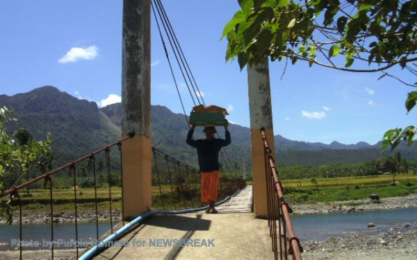 A local carries a sack of rice, which he would transport from Old Guinsaugon to the New Guinsaugon. Photo by Purple Romero